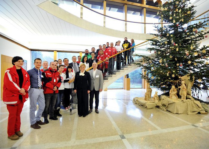 Posebna zahvala gre 2426 prostovoljkam in prostovoljcem Rdečega križa Slovenije, ki ob 1382 prostovoljkah in prostovoljcih Slovenske Karitas, 947 prostovoljkah in prostovoljcih Slovenske filantropije, 106 prostovoljkah in prostovoljcih ADRE, 700 gasilcih in mnogih delavcih Uprave RS za zaščito in reševanje, občinskih uslužbencih ter mnogih drugih že od konca septembra, še posebej pa od 16. oktobra letos, v sprejemnih in nastanitvenih centrih po Sloveniji lajšajo stiske množic ljudi, ki prihajajo v Slovenijo iz območij, kjer divjajo vojne. In hvala tisočem krvodajalkam in krvodajalcem, ki darujejo delček sebe, da življenje mnogih teče dalje.