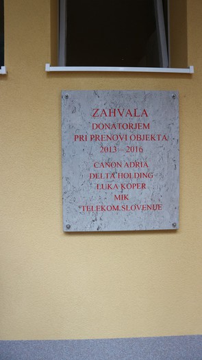 Delta Holding, pa z enkratno donacija v 2016 za financiranje izgradnje termofasade na objektu
