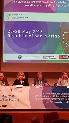 Rdeči križ Republike San Marino od 25. do 28. maja 2015 gosti 12. Mediteransko konferenco Rdečega križa (RK) in Rdečega polmeseca (RP). Rdeči križ Slovenije na konferenci zastopata generalna sekretarka RKS Renata Brunskole in strokovna sodelavka RKS za mednarodne zadeve, mlade in prostovoljstvo Tina Nemanič. V torek, 26. maja so predstavnike vseh 26 nacionalnih organizacij RK in RP, ki sestavljajo članstvo Mediteranske konference, pozdravili visoki predstavniki Republike San Marino in IFRC. Rdeči križ Slovenije (RKS) je v torek, 26. maja 2015, na delavnici z naslovom 'Socialni vplivi gospodarske krize' predstavil svoj pomemben prispevek pri razreševanju posledic ekonomske krize v Sloveniji. Delavnico vodi Rdeči križ Grčije, poleg RKS pa so svoje prispevke predstavili tudi Rdeči križi Albanije, Črne Gore, Hrvaške in Španije. Generalna sekretarka RKS Renata Brunskole bo zadnji dan konference, v četrtek, 28. maja 2015 predsedovala plenarnemu zasedanju o socialni vključenosti ter spodbujanju kulture nenasilja in miru.