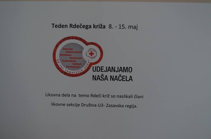 V prostorih upravne zgradbe Občine Trbovlje so v sklopu Tedna RK od 8. maja na ogled likovna dela članov U3 na temo Rdeči križ, ves mesec maj pa porvošolci obiskujejo prostore RKS OZ Trbovlje, kjer izvedo o osnovah prve pomoči, znaku RK. temeljnih načelih in klucu na št. 112.